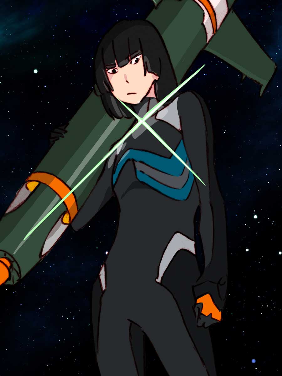 戦艦「ベオグラード・ザッハ」のパイロット。 黒髪、色白で寡黙。特に自分の事を話したがらない。 大怪我をして宇宙をただよっているところをラビトのアーに助けられ、『フィフスゴッド』に加入する。 刀を操る対四獣神用人型兵器「クレッセント・ブルーブロンズ」に乗る。